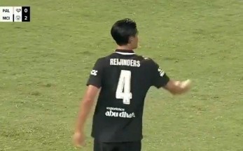 8月11日讯 在昨天曼城的热身赛中,曼城中场赖因德斯球衣上的名字印错了。